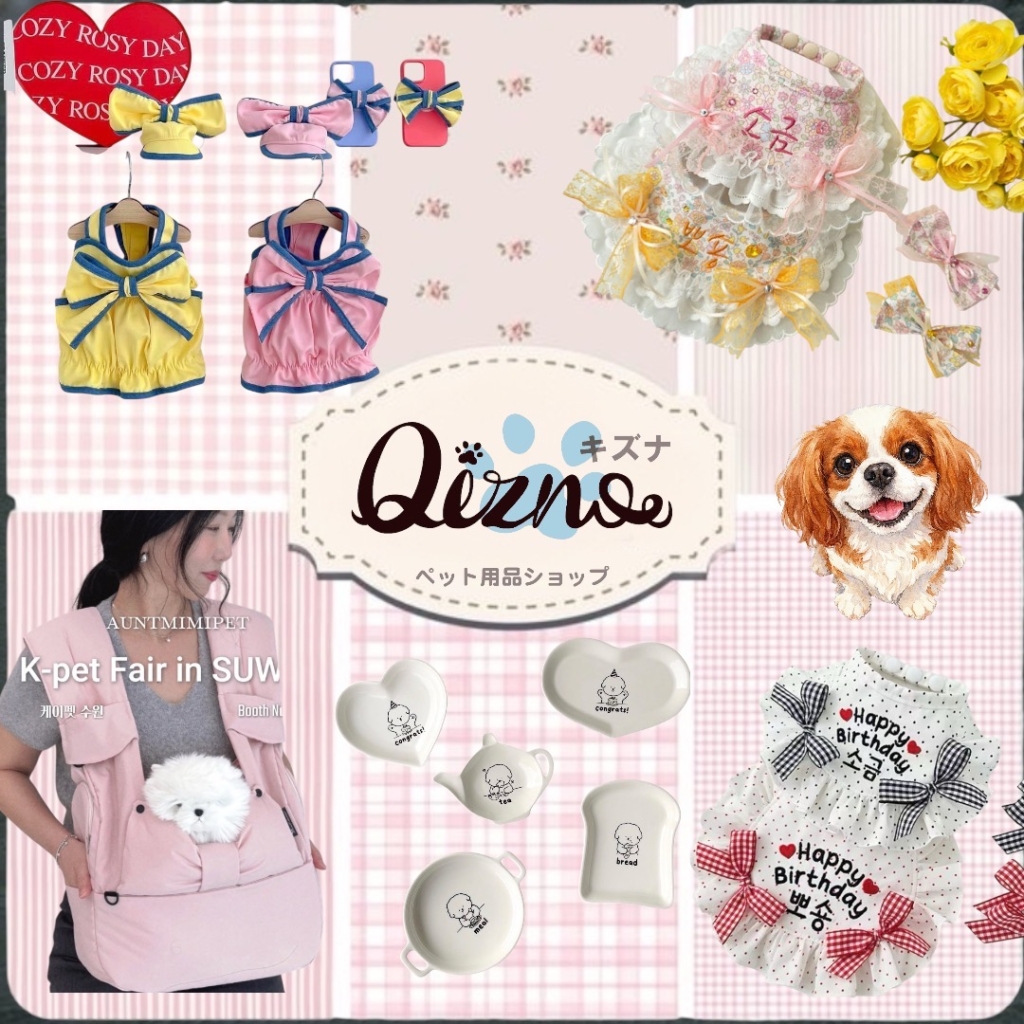 キャバリアちゃんに似合う春らしい明るい色の可愛い洋服やスタイ、おもちゃにアクセサリーなどをご用意してます😊